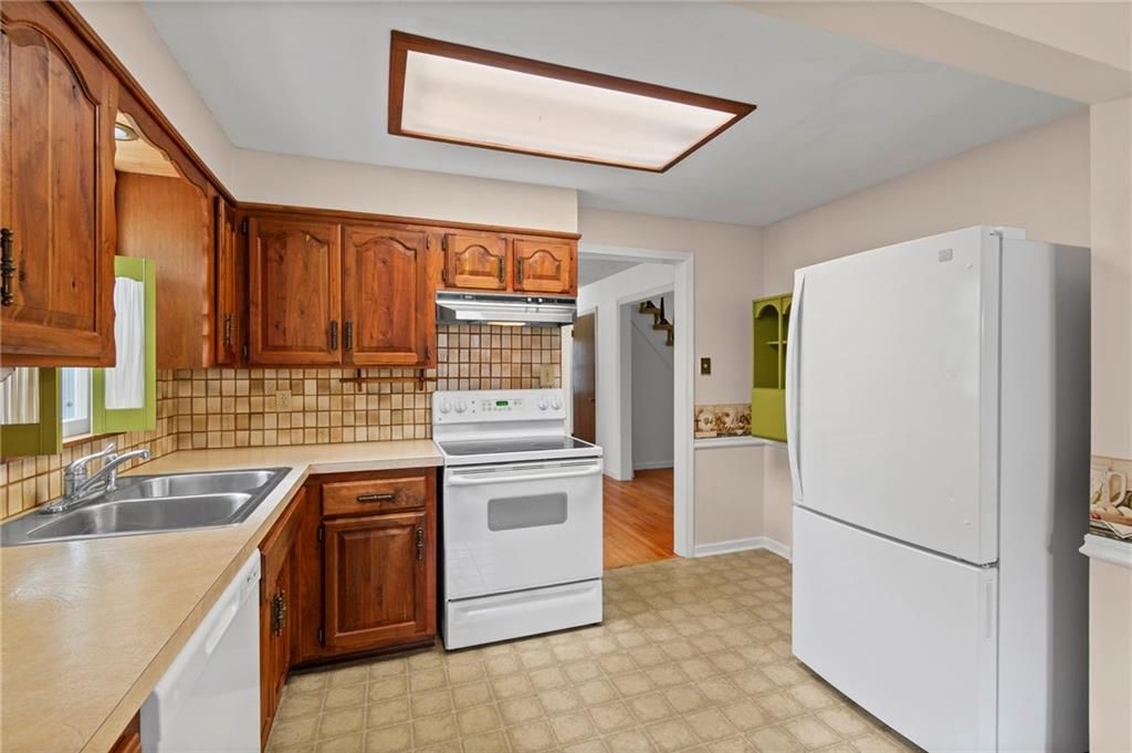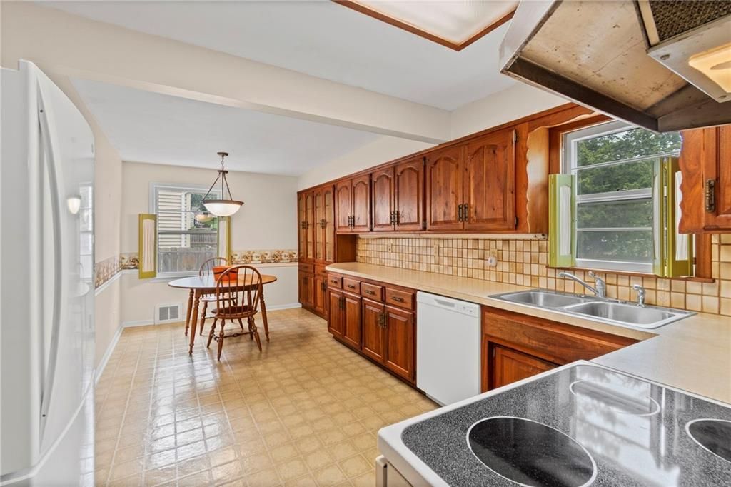 Tucked away on a quiet, tree-lined street, this delightful home radiates timeless charm and comfort. With four spacious bedrooms and two full baths, a rarity in this neighborhood, it offers a perfect mix of vintage character and some modern updates. Original hardwood floors have been uncovered, stretching across much of the interior and complimented by windows in every room. The living room features a cozy fireplace, steps aways from a formal dining room while the large kitchen/dining area boasts beautiful built-in cabinetry to showcase your treasures. Two bedrooms and a full bath are on the main level, with two more bedrooms upstairs sharing another full bath - an ideal setup for those needing extra space. Don't forget to check out the great attic storage area that spans the upstairs and is accessible from each bedroom. The finished basement is an excellent space for a playroom or an extra hangout area, complete with built-ins ideal for storing games, toys, holiday decorations, and more. It also includes a dedicated laundry area and ample storage for tools, hobbies, or crafts. A large stamped concrete patio greets you at the front door, providing a cozy spot to relax and enjoy the fall. The fenced backyard includes another spacious concrete patio, perfect for outdoor activities. Surrounded by a canopy of trees, the peaceful backyard invites gardening, gatherings, or quiet moments of reflection. This home's nostalgic charm and inviting neighborhood atmosphere make it a perfect retreat to enjoy the beauty of everyday life. Walking distance to the main corridor of Mission with quaint shops, dining, shopping. It is delightful.