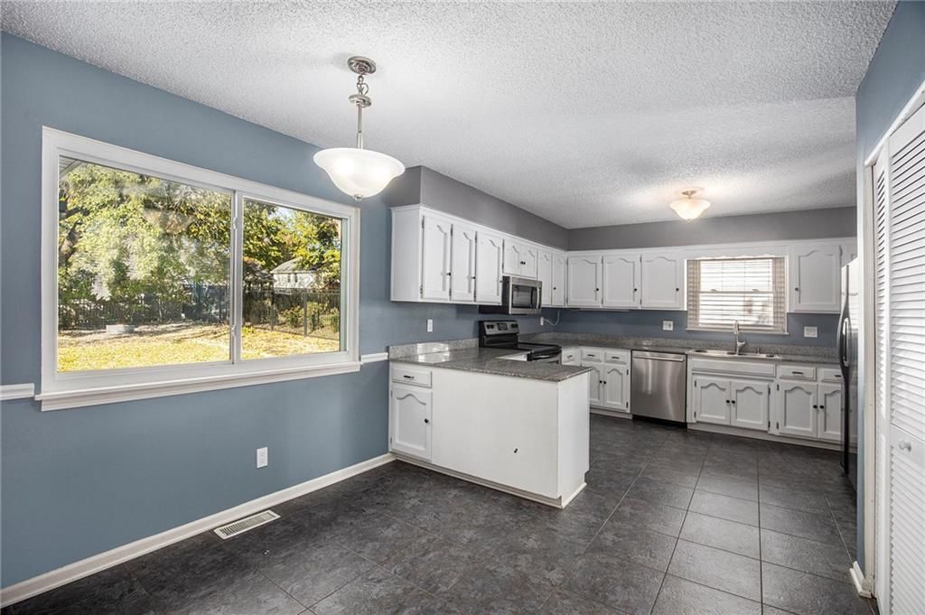 Welcome home to this charming 3-bedroom, 2-bath Kansas City beauty featuring a warm and inviting living room with vaulted ceilings, wood beams, and a cozy brick fireplace as the focal point. The kitchen offers plenty of cabinet space, stainless steel appliances, and a great layout for both cooking and entertaining. Step outside to enjoy the fenced backyard - perfect for pets, play, or relaxing evenings. There is also a 4th nonconforming(no closet) bedroom on the second level that would make for a great office or hobby room. This home also includes a Google Nest security camera for added peace of mind. Located in a community that takes care of snow removal and offers fantastic amenities like a neighborhood pool, tennis court, clubhouse, and manicured common areas, this one has the ideal balance of comfort and convenience. Come see why this home stands out - it's ready for you to move in and make it your own!