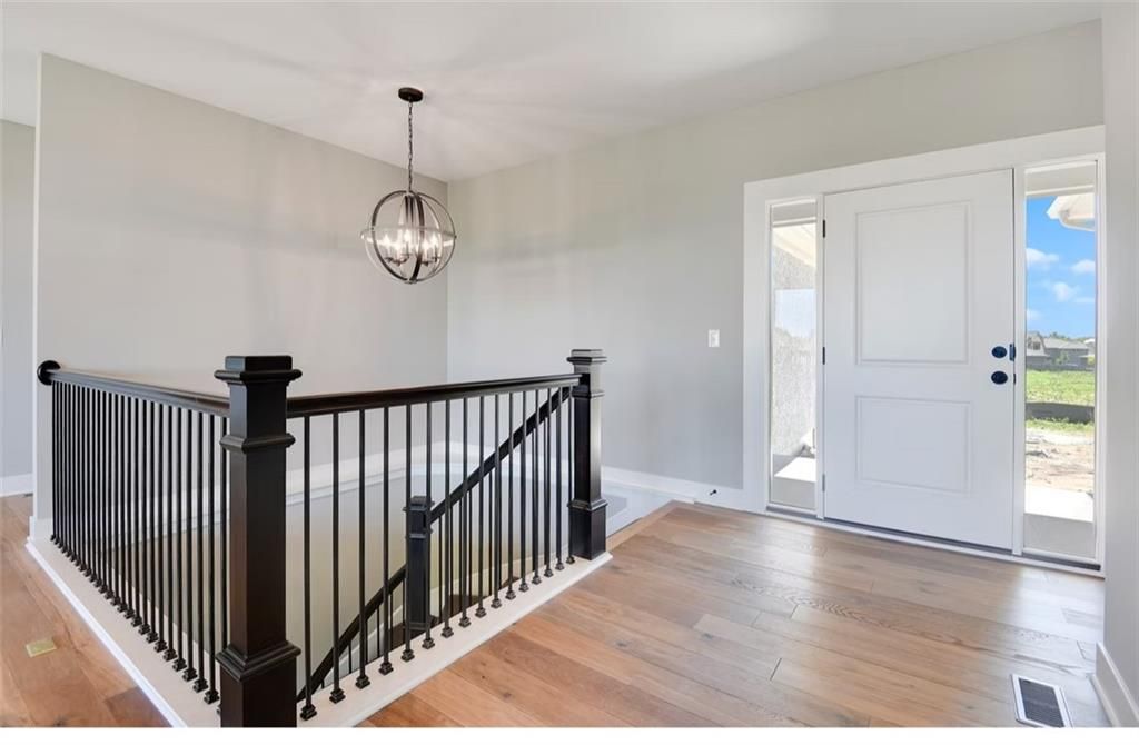 10,000 BUILDER INCENTIVE to be used as buyers choice of upgrades, closing costs, decor, etc!!!Accepted offer must close by 11/2/2025.This is a great deal on a beautiful home!! The Bristol is a reverse 1.5 story that sits on a large daylight lot. Home has an open main floor living, with curved front staircase leading to lower level, large main floor master with walk-in shower, free standing tub and double vanity, private exit to covered patio from master. Main floor second bedroom/office and 3/4 bath. Additional finished rec room, two bedrooms and Jack & Jill bath. Large media room. All bedrooms have generous walk-in closets. 3 car garage. Upgrades include: composite deck, upgraded entry door, under cabinet lighting, walk up bar in lower level with mini fridge, and more Home to be completed October 2025. Pictures are of another completed home on another lot. Agent to verify taxes, room sizes etc.