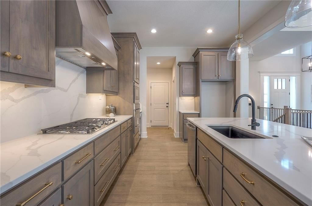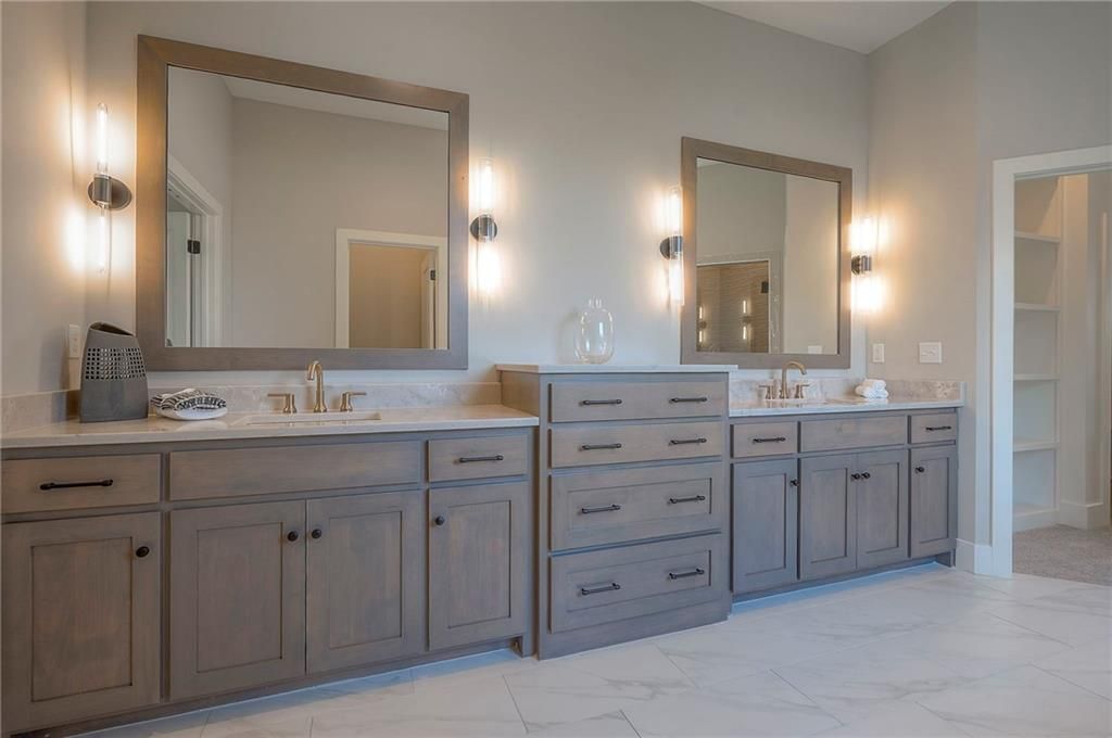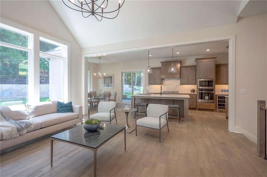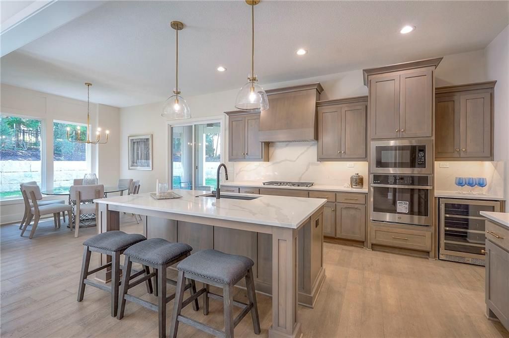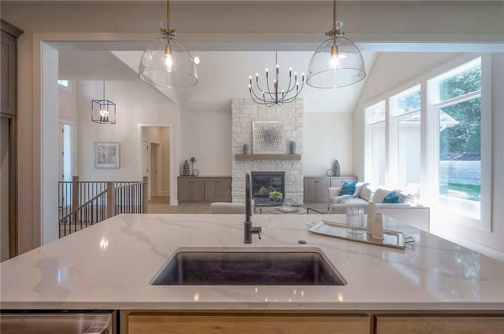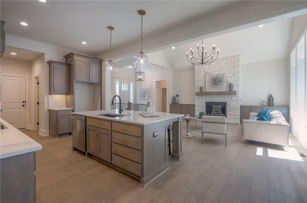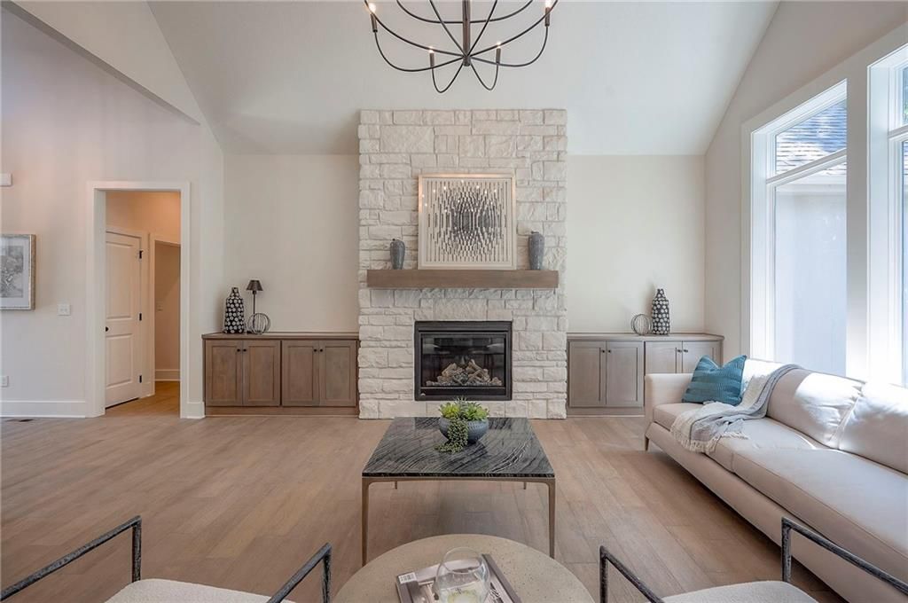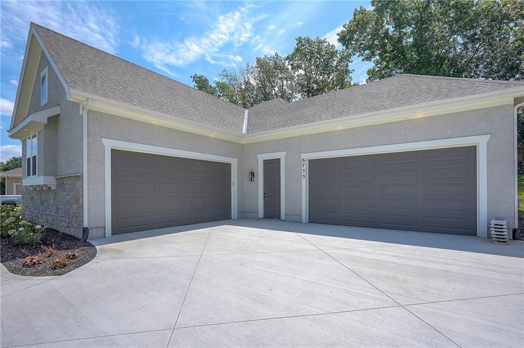 Yes! You read it correctly-this gorgeous brand new home provides a 4-car garage! Nestled on a tranquil wooded lot, this reverse also offers a perfect blend of serenity and luxury. This exceptional, award-winning floor plan by Rodrock Homes is THE FINAL OPPORTUNITY to own a brand new home in the secluded and treed hilltop community of Ridgestone Meadows. Step inside to discover lovely modern finishes and luxurious details, including soaring vaulted ceilings and elegant beams in the great room and a welcoming stone-to-ceiling fireplace. Open kitchen offers a spacious, functional center island, a beverage station with wine refrigerator and a generously sized walk-in pantry to accommodate all your culinary essentials! All built-in appliances are stainless steel, including the gas range. Enjoy a main level owner's suite that delivers lovely views of your treed homesite. The luxurious ensuite bathroom provides a generous double-vanity, a dreamy soaker tub and a large walk-in shower with two shower heads. A super productive laundry room with sink, cabinets and hanging rod connects to the hallway and to the well-designed, custom walk-in closet of the owner's suite. For your added convenience, the main level also includes a discreetly positioned second bedroom and full bathroom. Your lower level boasts a spacious family room with a convenient wet bar and built-in beverage refrigerator, plus a game table area. Two more bedrooms and another full bathroom provide ample space for both relaxation and privacy. Plus two good-sized storage rooms. Outside, embrace the enchanting tranquility of the treed lot, perfect for enjoying patio time in a nature-filled, park-like setting. This unique hilltop neighborhood is ideally located near a host of retail shops, restaurants and services, plus recreational amenities, like the county's walking trails and Shawnee Mission Park with its lake beach, outdoor theater and so many more outdoor fun and lake time options. Your opportunity is here!