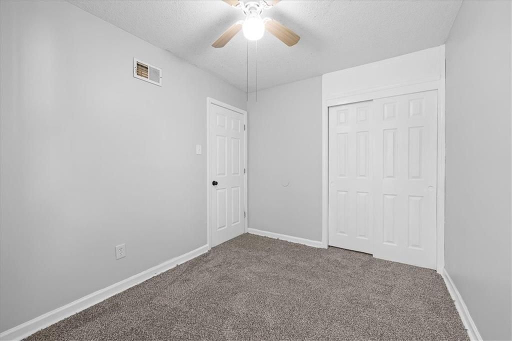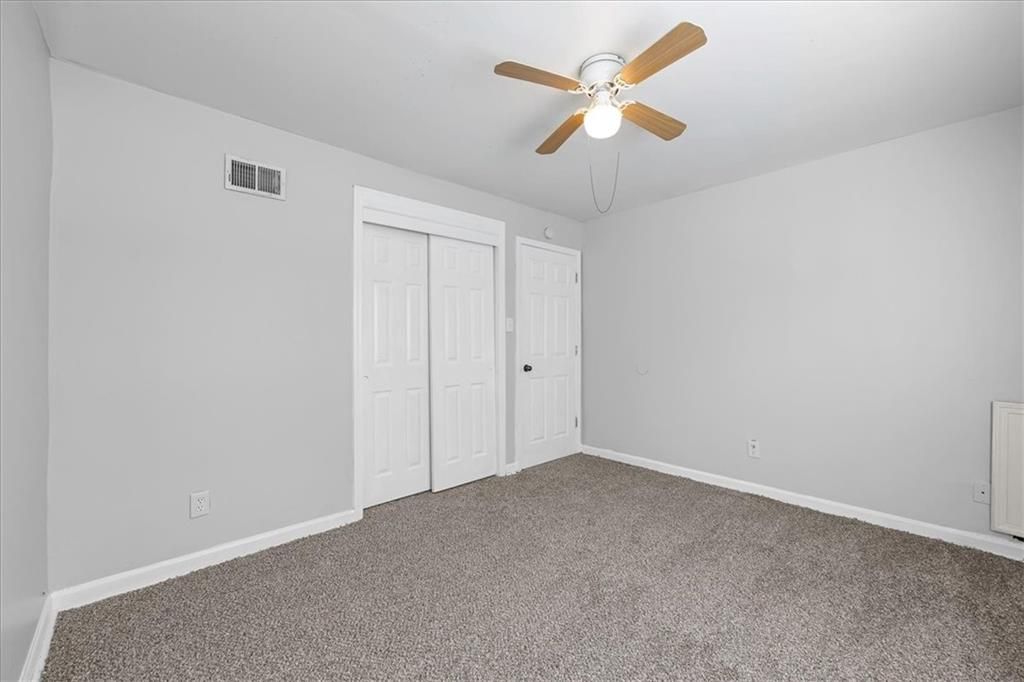 This straightforward two-bedroom home on a slab sits on a well-cared-for block surrounded by other tidy homes. Inside, neutral paint, updated lighting, and new carpet throughout make the living spaces move-in ready. The front living room connects to an eat-in dining area and a practical kitchen with wood cabinetry, tile backsplash, and durable countertops. Both bedrooms feature ample closet space and ceiling fans, while the full bathroom includes a tiled tub/shower combo and updated vanity. A newer water heater adds peace of mind. The property also includes off-street parking with a driveway running along the side of the house and a small back patio area off the rear entry door. Its simple one-level layout, low maintenance exterior, and easy access to main roads make it ideal for an investor seeking a steady rental or an owner-occupant looking for an affordable and functional home in Kansas City.
