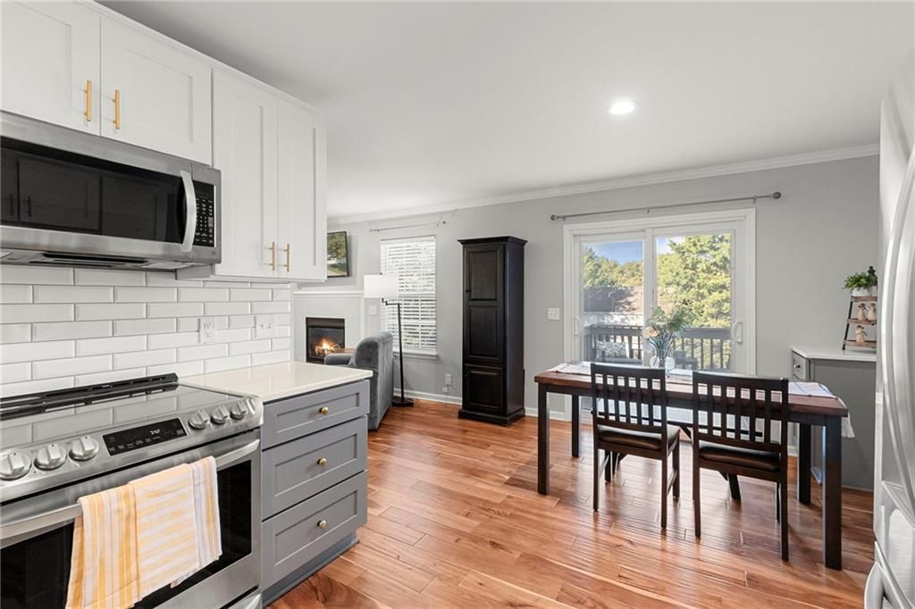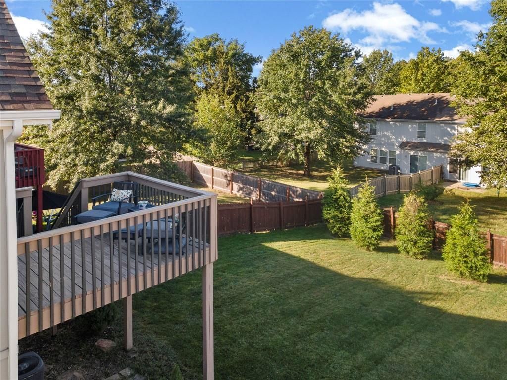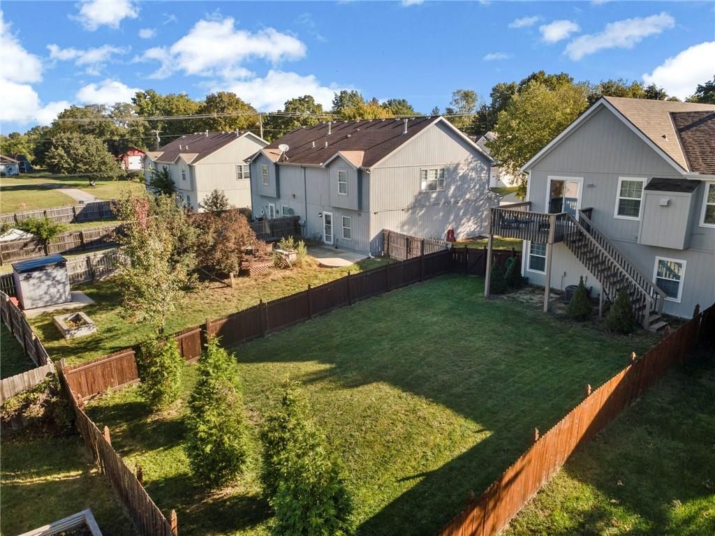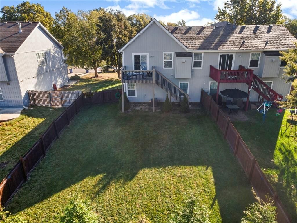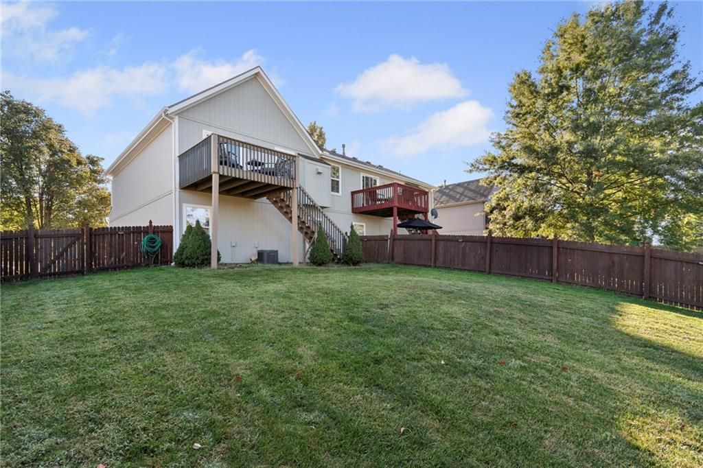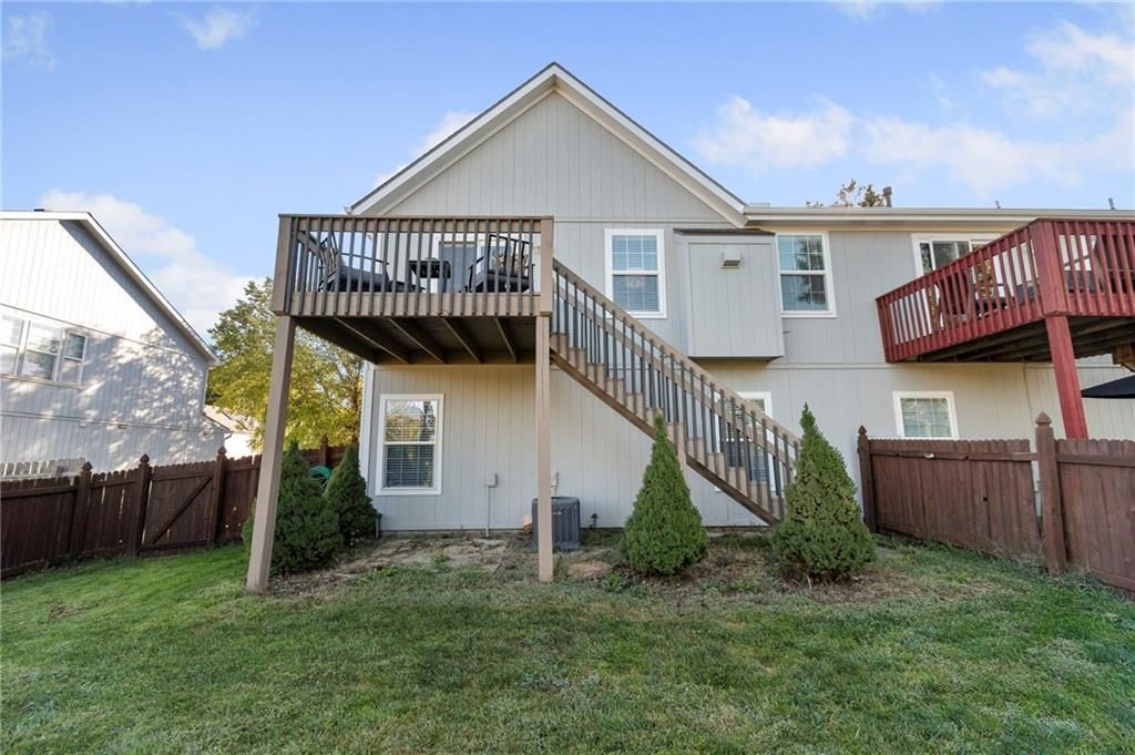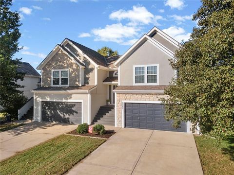 Welcome to this beautifully updated 3 bedroom, 2.5 bath townhome in Shawnee, KS. From the moment you enter, you'll love the spacious foyer's soaring ceilings and abundant natural light, perfect to wow guests. Upstairs, the spacious living room is perfect for gatherings and features gorgeous wood floors, gas fireplace, contemporary fan/light and large windows with blinds. The dining area boasts a built-in coffee/tea bar or office/media charging station with hidden outlets - a thoughtful touch for modern living. Double sliding doors w/ built-in blinds open Westward to a wood deck and overlooking fenced backyard with lush evergreens - ideal for relaxing and taking in glorious sunsets. Major updates in 2021-22 included a full kitchen remodel with custom cabinets, soft-close drawers, stainless steel appliances, stylish backsplash and sink, and sleek hard surface countertops. Additional updates included fresh paint and new wood floors throughout, plus new lighting and bathroom fixtures. The oversized primary suite is a true retreat, featuring vaulted ceilings, large windows with blinds and double doors to the ensuite. Value space? two vanities, a deep walk-in closet and separate shower and soaking tub will please. In the lower/ground level, you'll find two generously sized bedrooms. Each includes a walk-in closet, wood floors, and blinds. They also share a Hollywood-style bath w/ double vanity and shower/tub combo. A bonus nook is designed for your curio or other storage solutions. Don't miss it! 2024 UPGRADES PROVIDE PEACH OF MIND, including NEW ROOF, NEW GUTTERS and NEW Water heater. Additional favorite features include a two-car garage, a useful cedar storage are below the stairs/foyer, Google Fiber wiring, and low HOA dues to maintain the open green space and private playground. Don't forget the easy access to highways - making this home a rare blend of country feel with city convenience. See now to appreciate all this beautiful home has to offer!