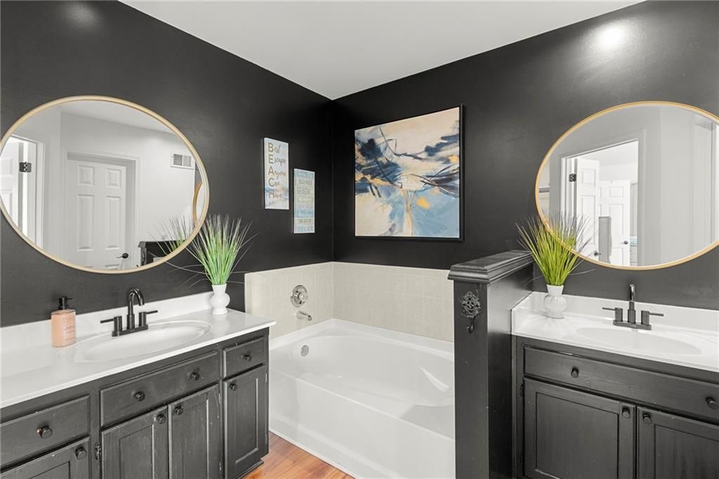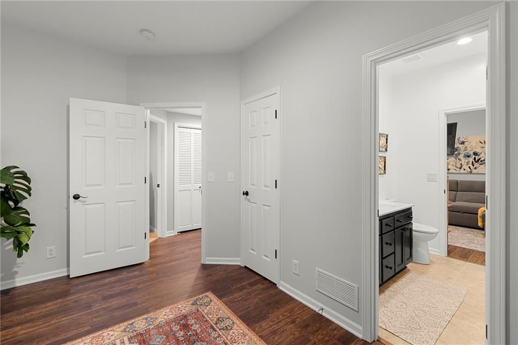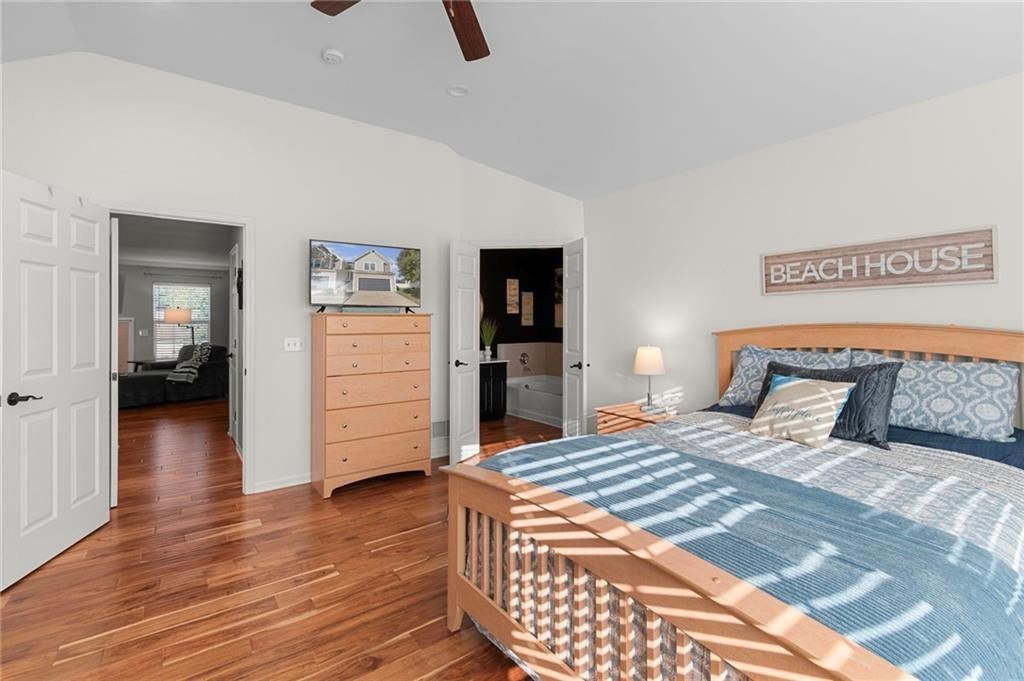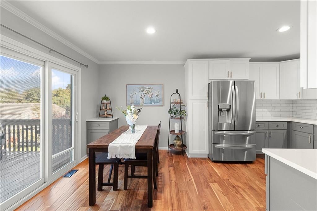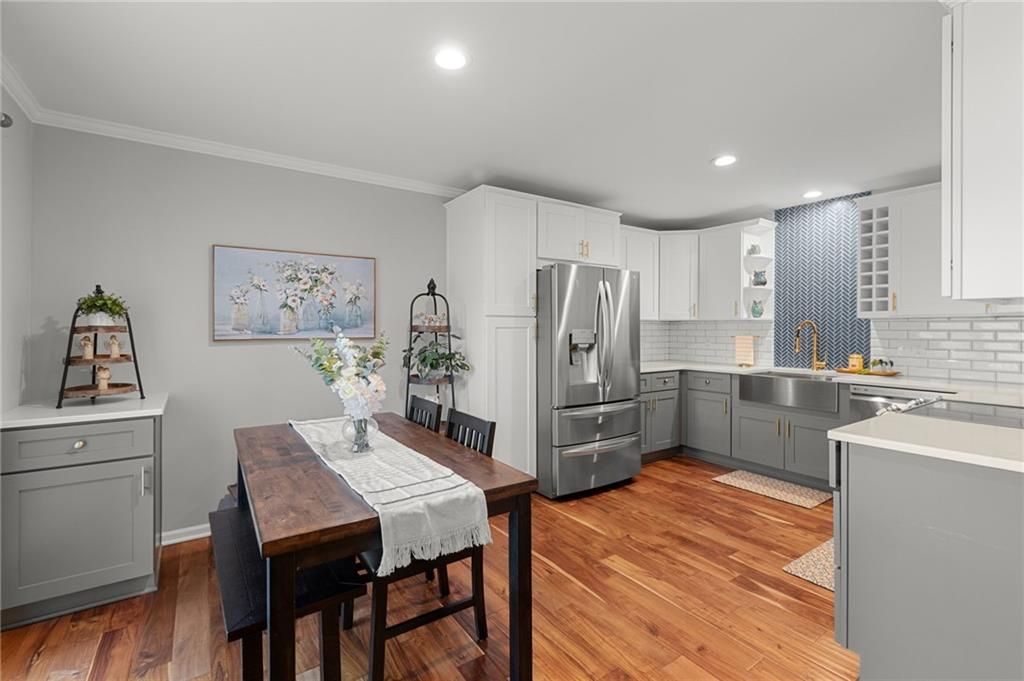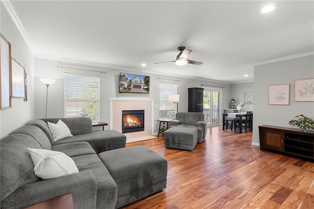 Welcome to this beautifully updated 3 bedroom, 2.5 bath townhome in Shawnee, KS. From the moment you enter, you'll love the spacious foyer's soaring ceilings and abundant natural light, perfect to wow guests. Upstairs, the spacious living room is perfect for gatherings and features gorgeous wood floors, gas fireplace, contemporary fan/light and large windows with blinds. The dining area boasts a built-in coffee/tea bar or office/media charging station with hidden outlets - a thoughtful touch for modern living. Double sliding doors w/ built-in blinds open Westward to a wood deck and overlooking fenced backyard with lush evergreens - ideal for relaxing and taking in glorious sunsets. Major updates in 2021-22 included a full kitchen remodel with custom cabinets, soft-close drawers, stainless steel appliances, stylish backsplash and sink, and sleek hard surface countertops. Additional updates included fresh paint and new wood floors throughout, plus new lighting and bathroom fixtures. The oversized primary suite is a true retreat, featuring vaulted ceilings, large windows with blinds and double doors to the ensuite. Value space? two vanities, a deep walk-in closet and separate shower and soaking tub will please. In the lower/ground level, you'll find two generously sized bedrooms. Each includes a walk-in closet, wood floors, and blinds. They also share a Hollywood-style bath w/ double vanity and shower/tub combo. A bonus nook is designed for your curio or other storage solutions. Don't miss it! 2024 UPGRADES PROVIDE PEACH OF MIND, including NEW ROOF, NEW GUTTERS and NEW Water heater. Additional favorite features include a two-car garage, a useful cedar storage are below the stairs/foyer, Google Fiber wiring, and low HOA dues to maintain the open green space and private playground. Don't forget the easy access to highways - making this home a rare blend of country feel with city convenience. See now to appreciate all this beautiful home has to offer!