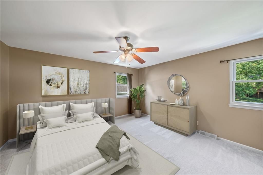 This 5-bedroom home blends smart updates with a location that puts parks, dining, and Lenexa City Center just minutes away. Two living areas on the main level - one with a fireplace - offer space for both lively gatherings and quiet evenings in. The bright kitchen steps directly onto a composite deck (2022) overlooking a deep, lush backyard - perfect for grilling with friends, hosting summer get-togethers, or catching a sunset after a long day. One bedroom on the main floor is currently set up as a home office, with the remaining bedrooms - including the primary suite with private bath - on the upper level. A second full bath serves the additional bedrooms, and a half bath sits just off the main-floor laundry. The lower level extends your living space with plenty of options for a rec room, TV lounge, or gym, plus the start of a wet bar for future entertaining. Extensive updates include James Hardie siding (2021), Champion windows, Lennox HVAC, garage doors, chimney lining and crown, roof, insulation, and gutters - allowing you to settle in without a long list of projects. The neighborhood's blend of long-time residents and newer neighbors creates a welcoming environment where connections come easily - whether you're chatting over the fence or inviting friends in for a casual evening.