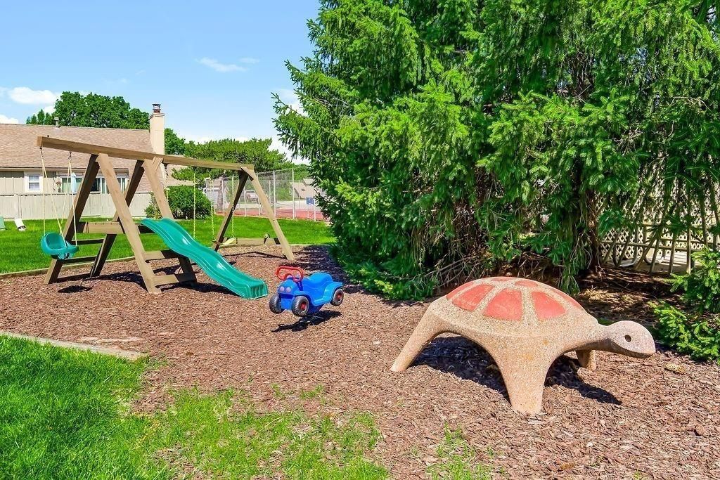 Enjoy the ease of one-level living in this beautifully updated home! The open floor plan of this end-unit townhome flows seamlessly. Updates include: new interior paint, flooring, lighting, windows, electric panel, radon mitigation system, kitchen and bathroom complete remodels. You will be impressed when you walk into the gorgeous living room that features soaring ceilings, recessed lighting, updated fireplace focal point, and new flooring. Step right into the sunny kitchen and eating space. The kitchen features beautiful cabinetry, updated tile, counters, and new appliances. The primary bedroom is the perfect place to relax at the end of the day, and the primary bathroom is beautifully remodeled with a step in tiled shower, brand new vanity, and upgraded lighting that offers various color and dimming options. The additional two bedrooms are located on the main floor and offer fresh paint and new flooring. The second full bathroom is impressive with a new tiled shower, new vanity, and special lighting. A partially finished basement extends your options with flexible space for hobbies, working from home, or entertaining, while still providing generous unfinished areas for storage. Outside, the newer landscaping is well-planned and maintained, creating inviting curb appeal and a peaceful setting. Enjoy meals outside on the enclosed patio with a brand new fence. The home is part of a maintenance-provided community, allowing you to spend less time on upkeep and more time enjoying your home and neighborhood. The community amenities include: 4 pools (1 for adults only), 4 tennis/pickleball courts, indoor & outdoor basketball courts, 2 clubhouses, a library that offers books, puzzles, and DVDs, a park, playground, and walking trails! Its location offers excellent access to shopping, dining, parks, and major highways, making it easy to stay connected to everything you need. Schedule your appointment today so you don't miss out on this wonderful home!