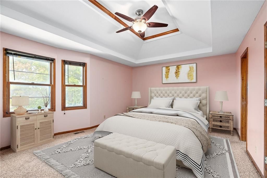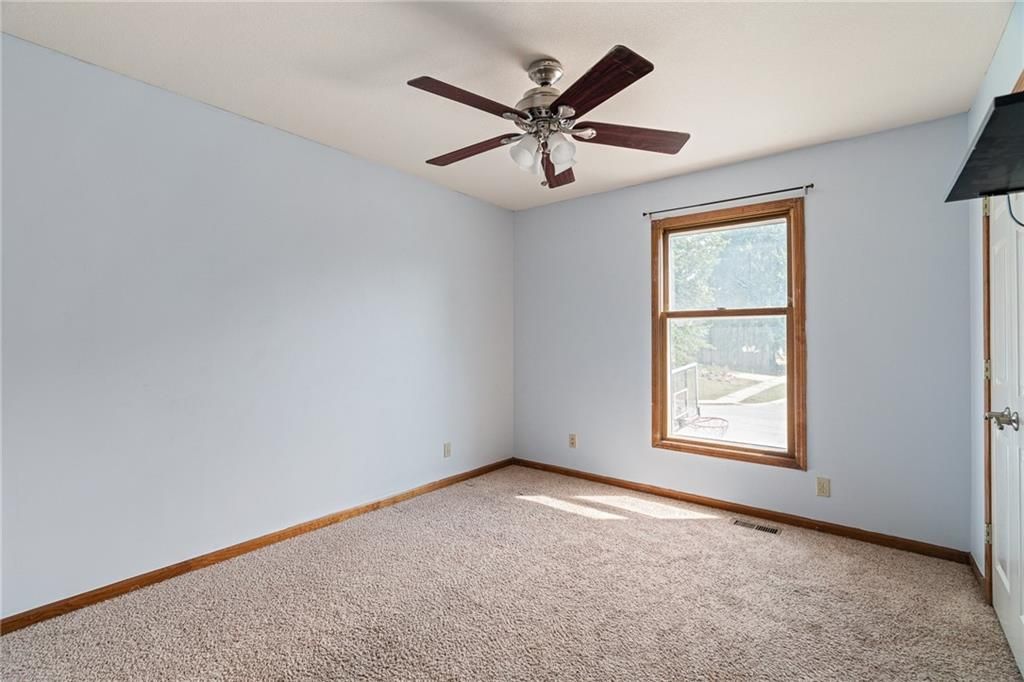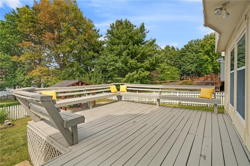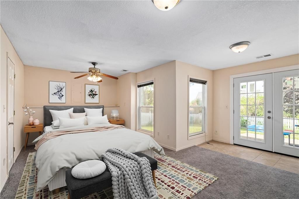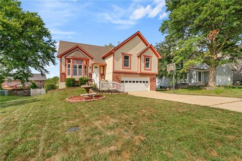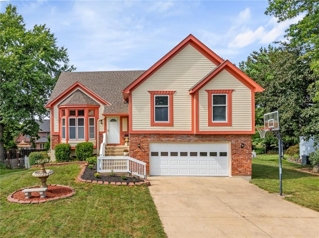Welcome to this charming 5-bedroom, 3.5-bath atrium-split home in south Overland Park, located in the highly sought-after Blue Valley School District. Offering over 2,100 sq. ft. of living space, this home features fresh exterior siding and paint, vaulted ceilings, a cozy fireplace, and a good-sized deck overlooking the spacious yard. The primary suite includes a private bath, while the walk-out basement offers a private bath of its own and can easily serve as a 5th bedroom with ensuite - providing tons of space and privacy for family or guests. The versatile floor plan includes formal living and dining areas, new French doors, and light-filled gathering spaces designed for both comfort and style. Ideally situated near parks, shopping, dining, and commuter routes, this home combines convenience, charm, and top-rated schools. Some photos have been virtually staged and are not to scale, intended to showcase decorating potential. Buyer/Buyer's agent to verify square footage.