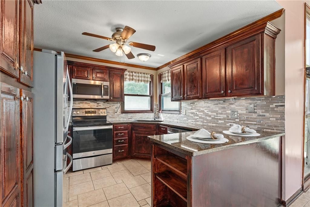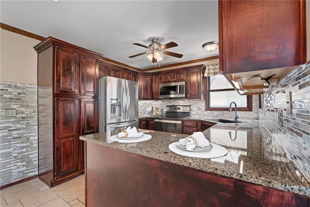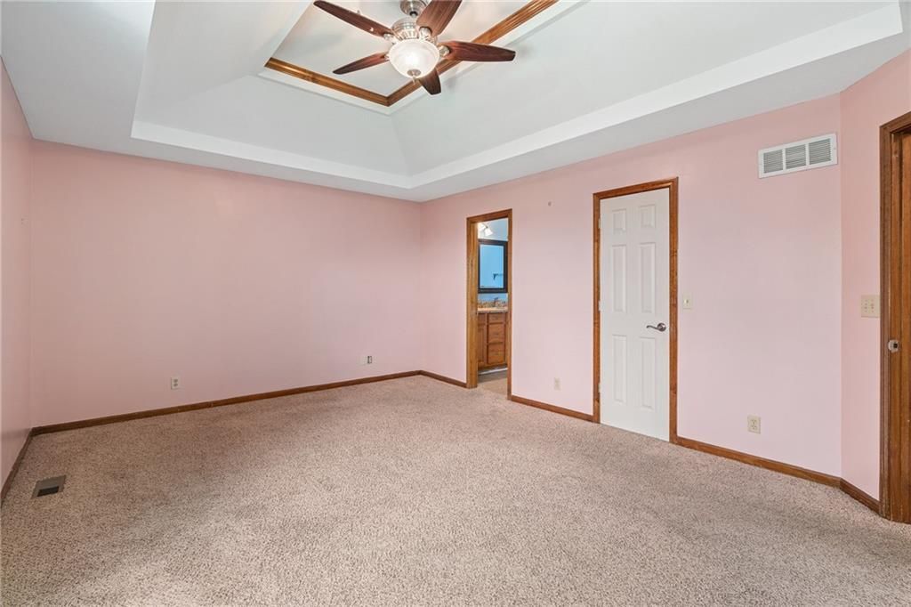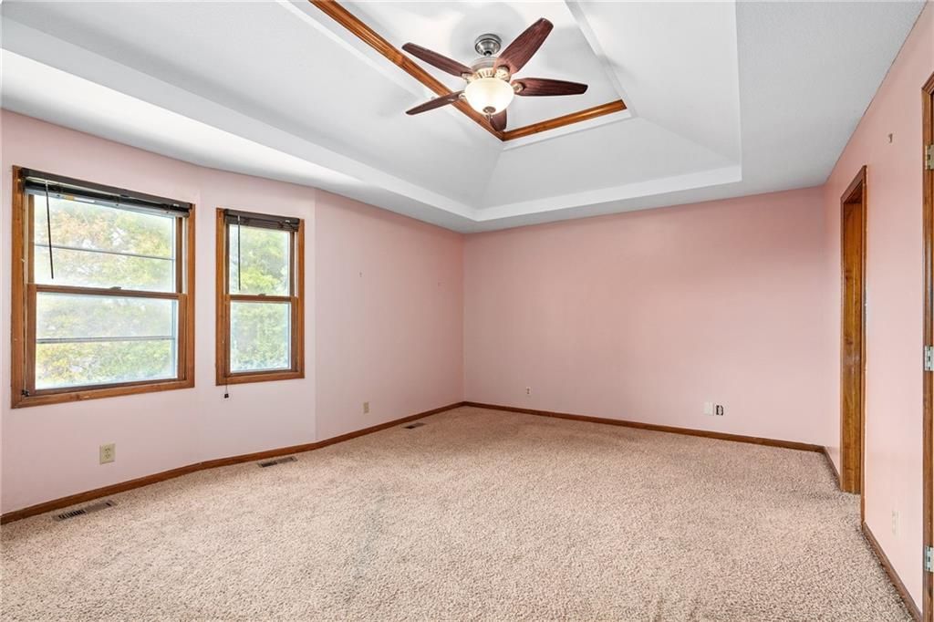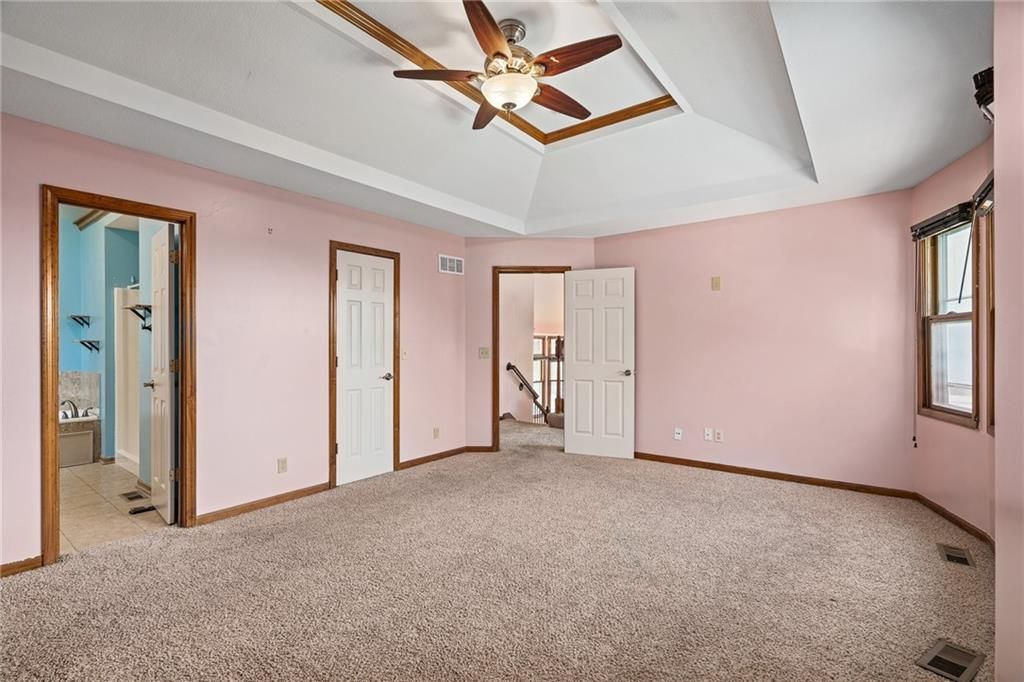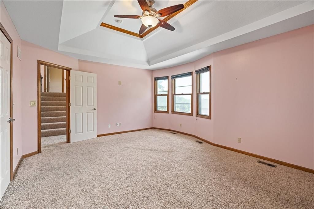 Welcome to this charming 5-bedroom, 3.5-bath atrium-split home in south Overland Park, located in the highly sought-after Blue Valley School District. Offering over 2,100 sq. ft. of living space, this home features fresh exterior siding and paint, vaulted ceilings, a cozy fireplace, and a good-sized deck overlooking the spacious yard. The primary suite includes a private bath, while the walk-out basement offers a private bath of its own and can easily serve as a 5th bedroom with ensuite - providing tons of space and privacy for family or guests. The versatile floor plan includes formal living and dining areas, new French doors, and light-filled gathering spaces designed for both comfort and style. Ideally situated near parks, shopping, dining, and commuter routes, this home combines convenience, charm, and top-rated schools. Some photos have been virtually staged and are not to scale, intended to showcase decorating potential. Buyer/Buyer's agent to verify square footage.