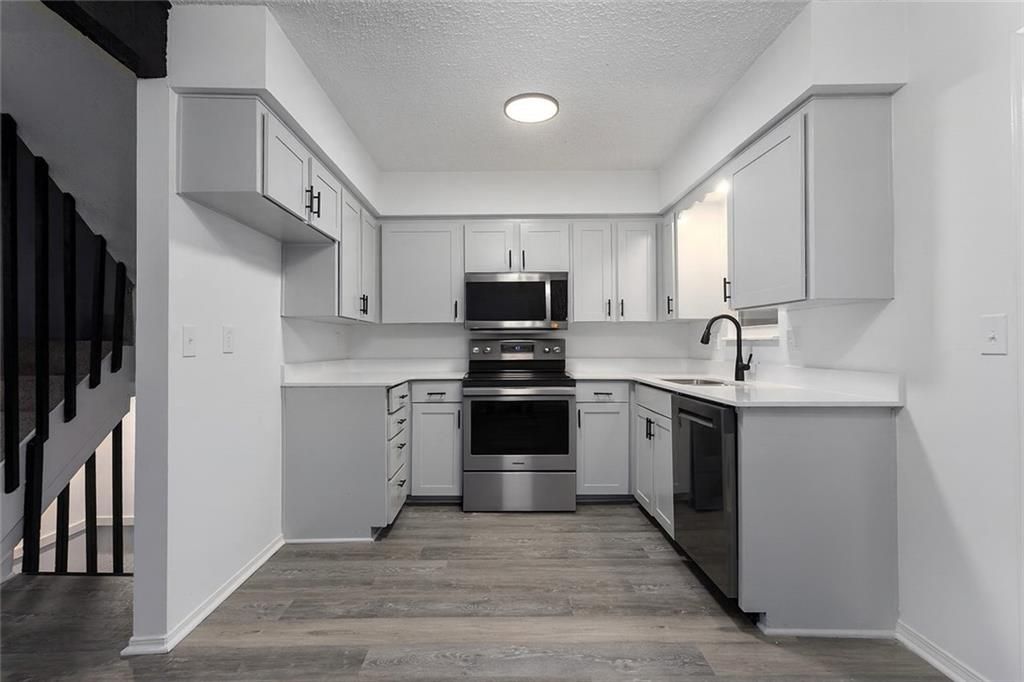 Beautifully renovated townhome featuring 2 bedrooms and 1.5 bathrooms. This home has been fully updated with brand new flooring, fresh interior paint, modern countertops, new vanities, updated fixtures, and a brand-new concrete patio. The main level offers a functional layout with a spacious living area and updated kitchen, while both bedrooms are located upstairs for privacy. Move-in ready and conveniently located near shopping, dining, schools, and easy highway access. A great opportunity to own a low-maintenance, stylish home in Grandview.