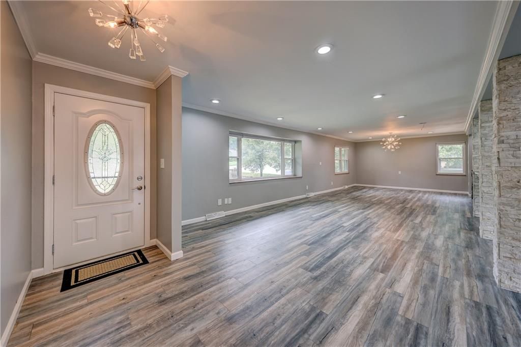 Super Rare Leawood 5 Bedroom Updated Ranch home! LVP flooring on main floor general areas and finished lower lever general areas. Bedrooms have carpets. Open concept on the main floor enabling a Hearth room with fireplace, large dining area and living room area. Gas range for the Chef in you! Granite Kitchen counters with lots of storage! Granite surface in all bathrooms! Finished Walk-out lower level and Wet Bar and fireplace. Recreation room or exercise room adjacent to the Family room and Wet Bar. 2 Car garage with access from 89th Street. Large Privacy fenced in back yard! Quick possession possible!