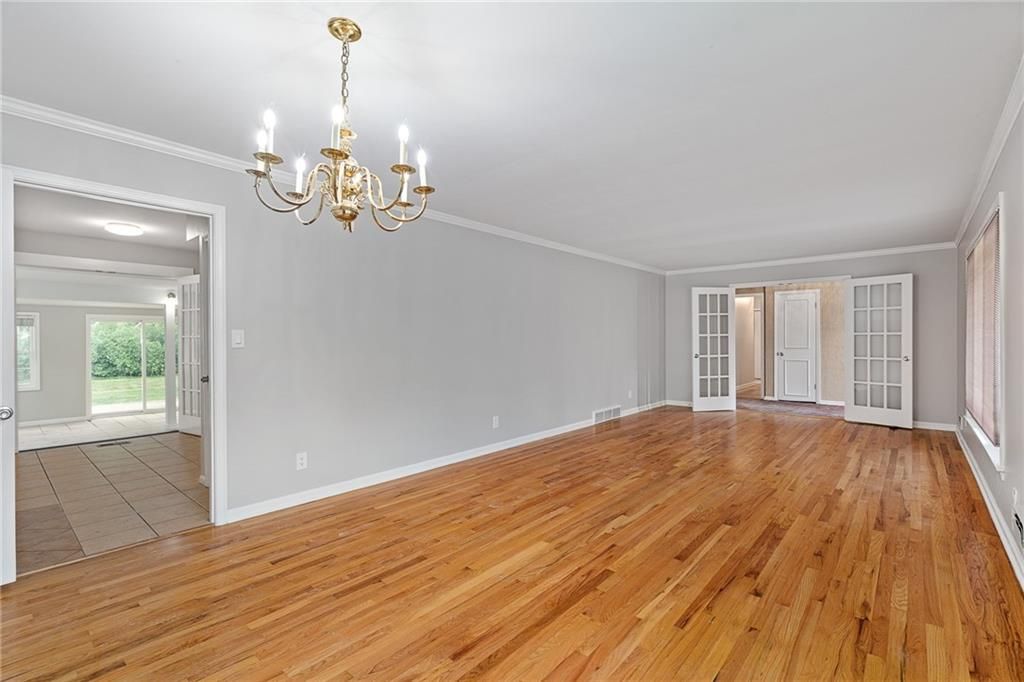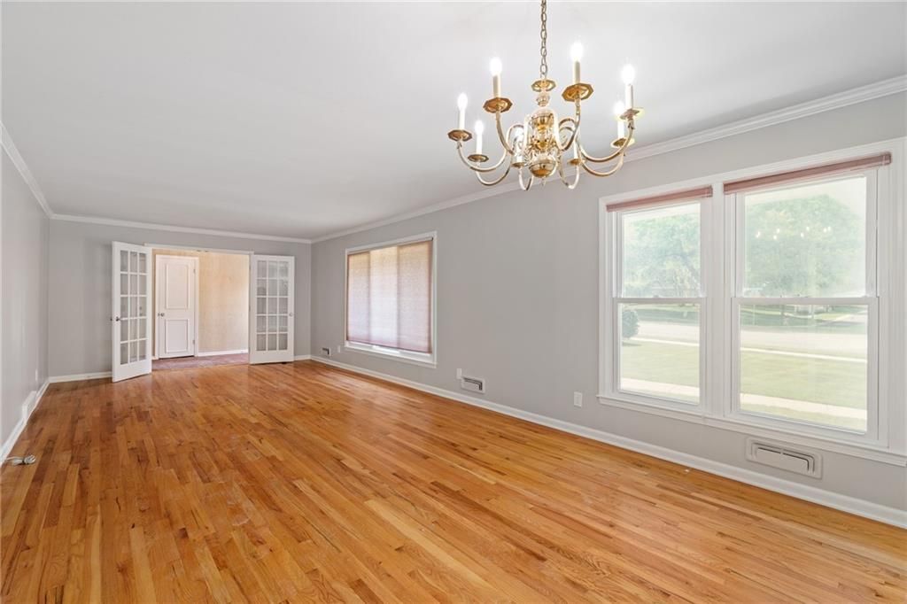 Motivated seller move in before the holidays! Enjoy the ease of one-level living in this three bedroom, two bath ranch featuring freshly refinished hardwood floors and fresh paint throughout. The light filled living and dining room combo offers a welcoming space to entertain, while the vaulted ceiling family room creates a cozy atmosphere with a fireplace flanked by built-in bookshelves. Step in the all season room at the back of the home--perfect for relaxing year round and enjoying the the large backyard. The full basement is ready for your imagination--finish it for additional living space, a home gym, or hobby area. Ideally located near Corinth Square and Ranchmart Center with easy access to shopping, dining and highways. A wonderful opportunity in a highly sought after neighborhood. Some updates and repairs are needed but with the a great layout, this home is ready to be transformed into your dream home.