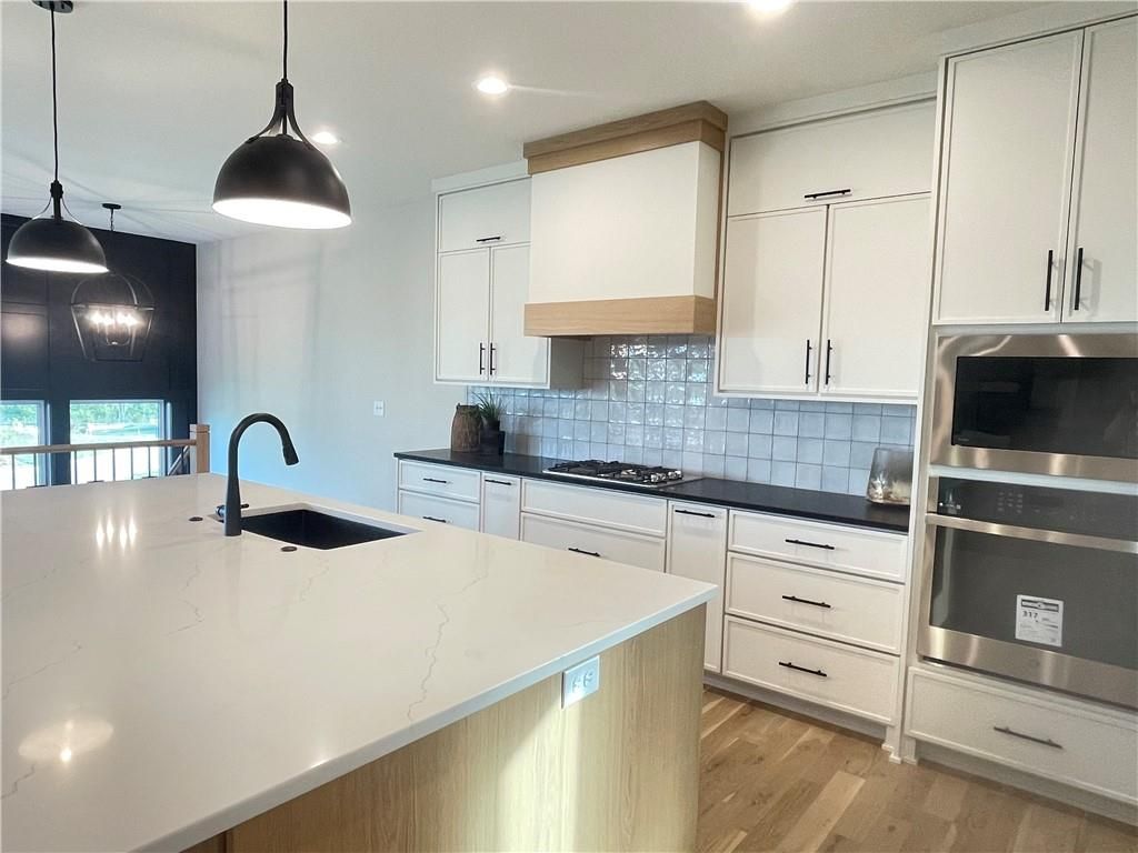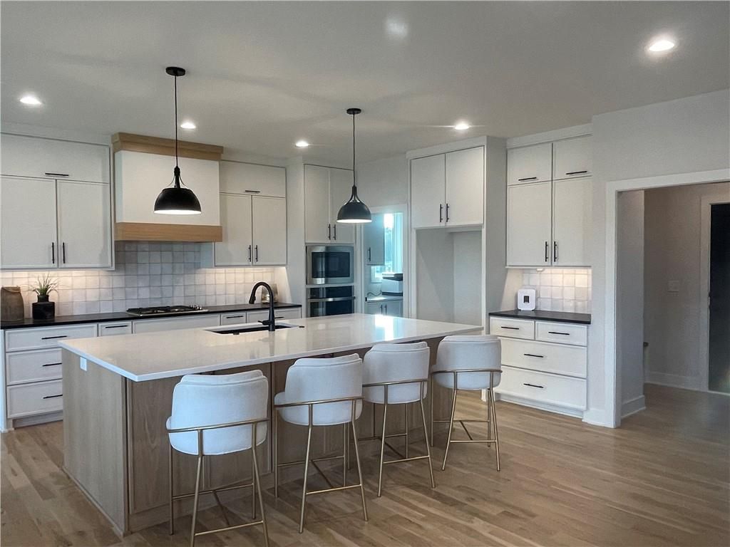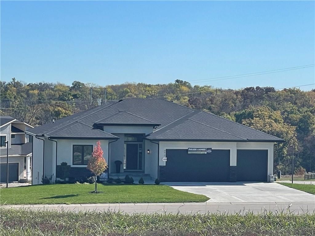 WaterCrest Landing | Sunset Views. Elevated Living. The Pinnacle of Perfection: Spiess Custom Homes - Model Home. This exceptional property offers a rare opportunity to own a home finished to an uncompromising standard, showcasing the builder's absolute best in design, materials, and craftsmanship. This residence is a masterclass in modern living, featuring an open, flowing layout that is both grand and intimate. Sunlight pours in, highlighting the artisan-level millwork and designer lighting fixtures found in every room. The gourmet kitchen is a true showpiece, equipped with top-tier appliances, expansive custom cabinetry, and a breathtaking island that serves as the heart of the main level, and walk in pantry. The luxurious flow continues into the private quarters. The main-floor primary suite is a lavish retreat, designed for ultimate tranquility. The finished lower level is perfectly executed for premium entertainment, boasting elevated finishes like a custom wet bar and a versatile recreation area - all mirroring the quality of the main level. Nestled directly across from Lake Lenexa and Black Hoof Park, this home offers a lifestyle defined by natural beauty and convenience. As a resident of WaterCrest Landing, enjoy exclusive maintenance-provided living and community amenities, including the pool, pickleball court, mini golf, walking trails, pond and more! Every detail in this model home was selected to impress and inspire. This is more than a home; it is a meticulously curated experience. Schedule your private viewing and prepare to be captivated.