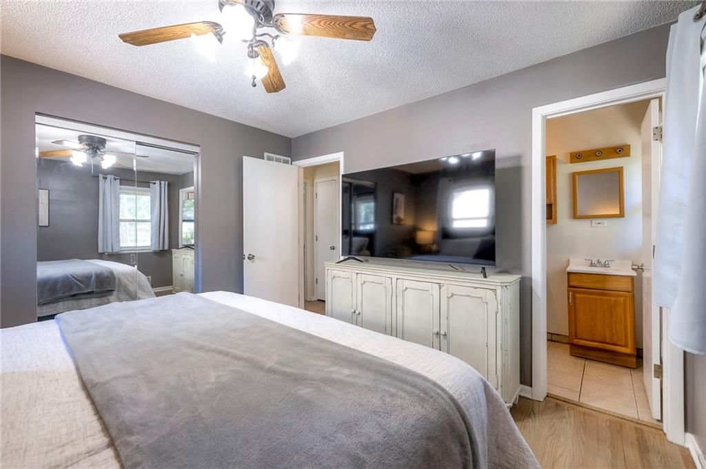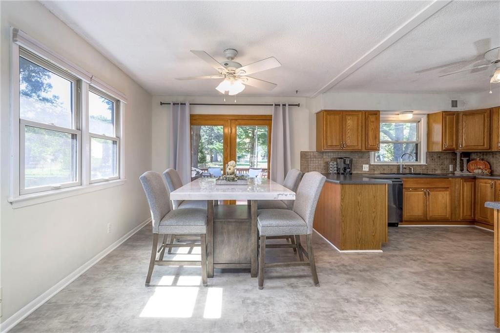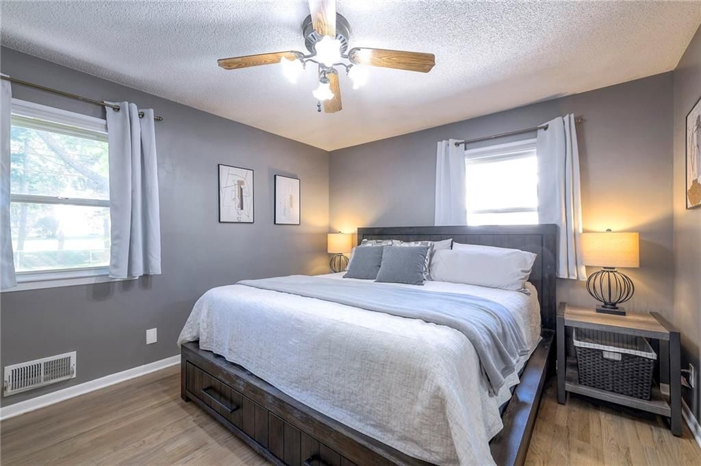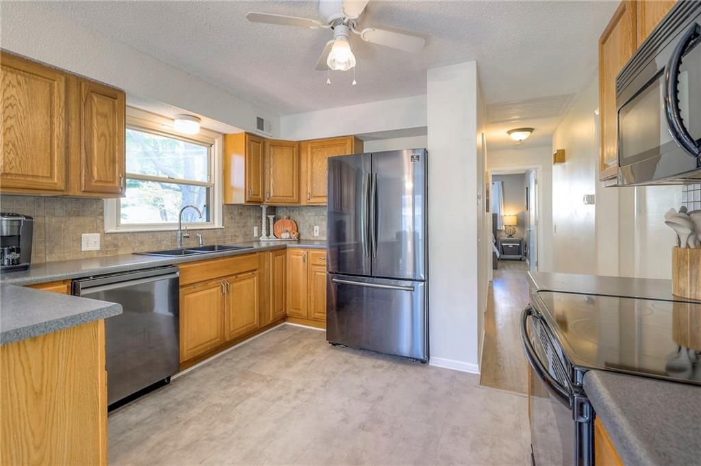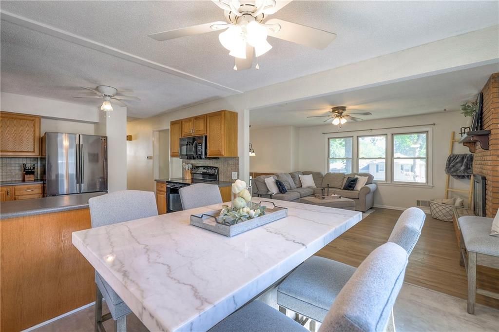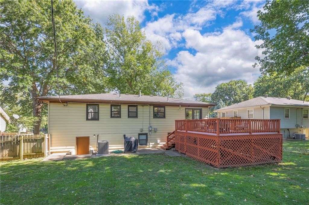FANTASTIC OPPORTUNITY in Overland Park! Prime location near shopping and restaurants with easy highway access! Welcoming great room with beautiful floor to ceiling fireplace and fresh paint! Kitchen overlooks dining area and walks out to deck, perfect for dining al fresco! Refinished hardwood floors, NEW LVP flooring, NEW stair and basement carpet! Primary bedroom boasts private bathroom! 2 additional bedrooms and beautifully remodeled bathroom complete this level! Finished basement with fireplace is the perfect place to host friends and watch the big game! Enjoy fall afternoons on the deck in your large fenced backyard! Welcome Home! Taxes and SqFt per county record. Room sizes approx. No preferences or limitations or discrimination because of any of the protected classes under Fair Housing.