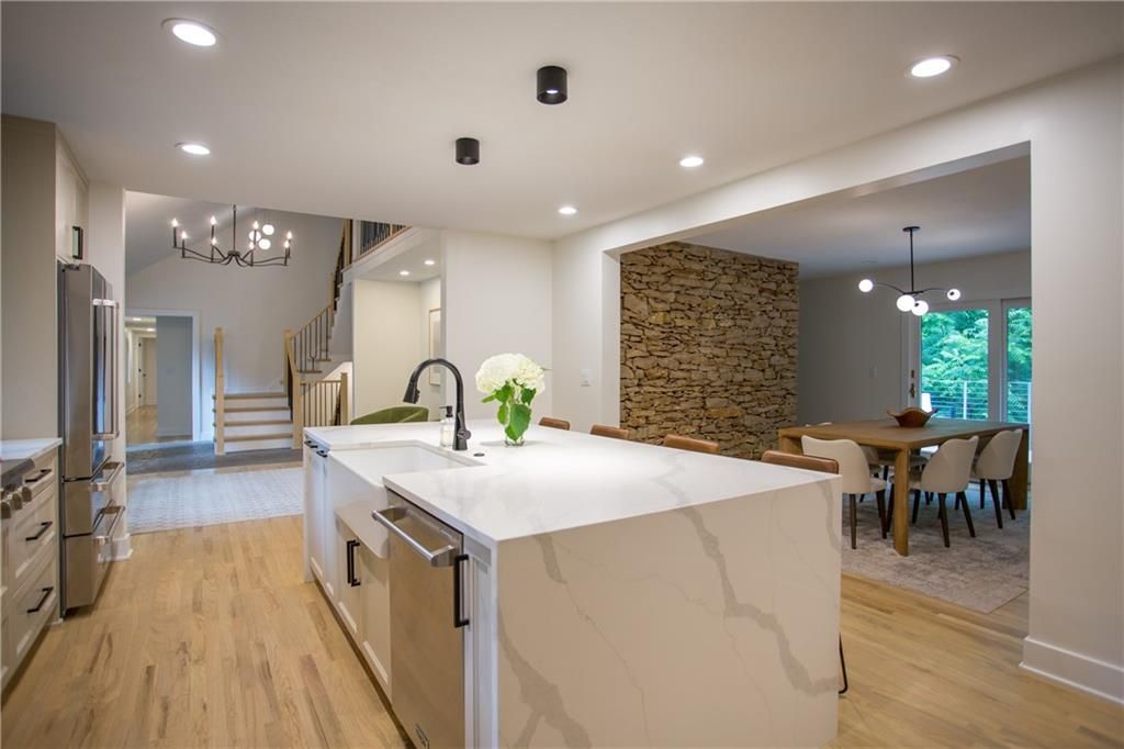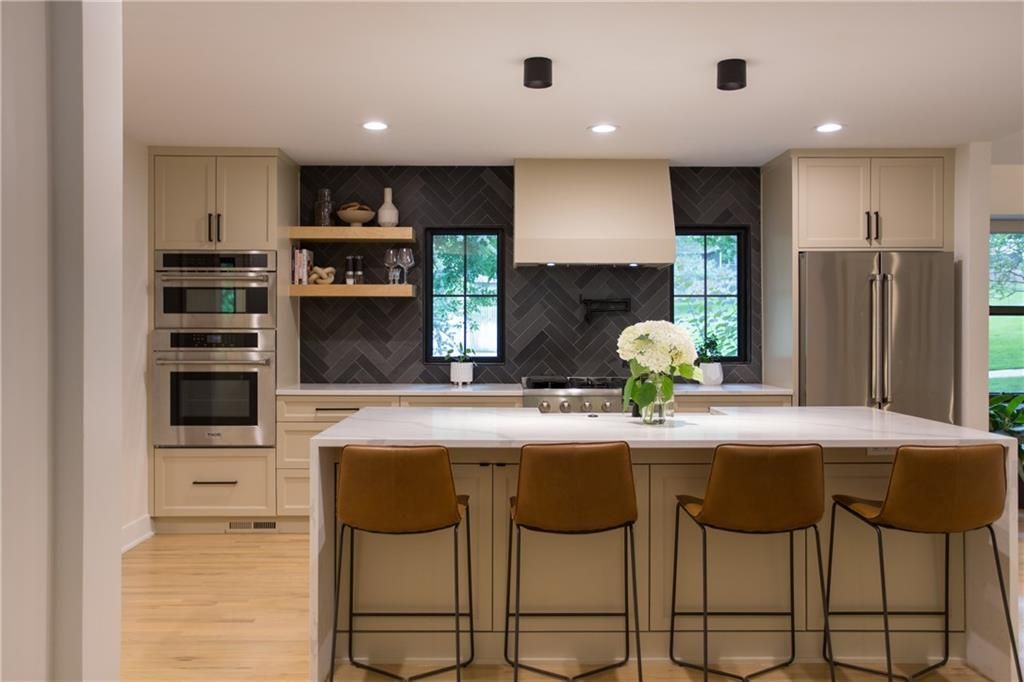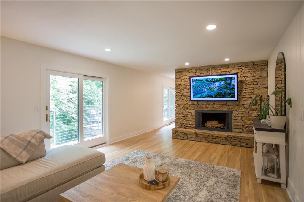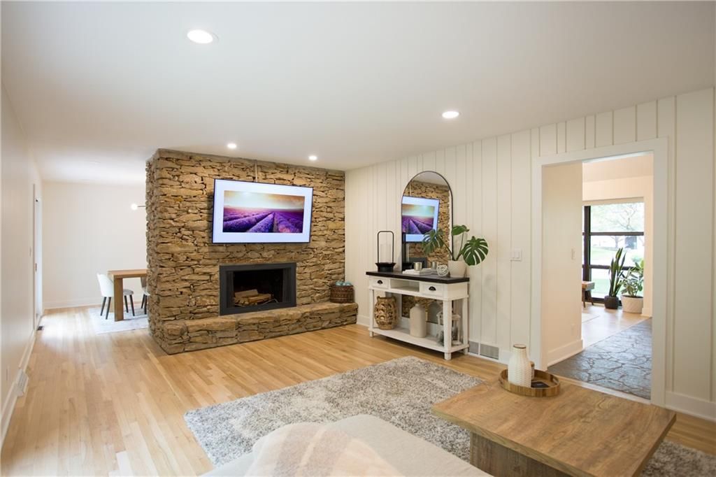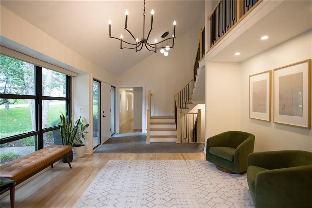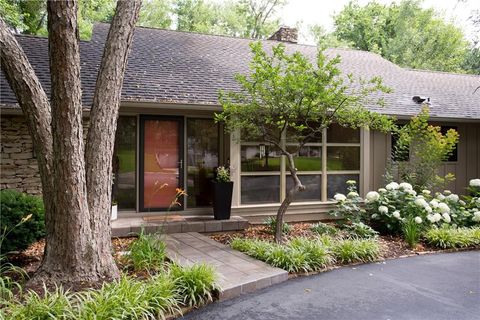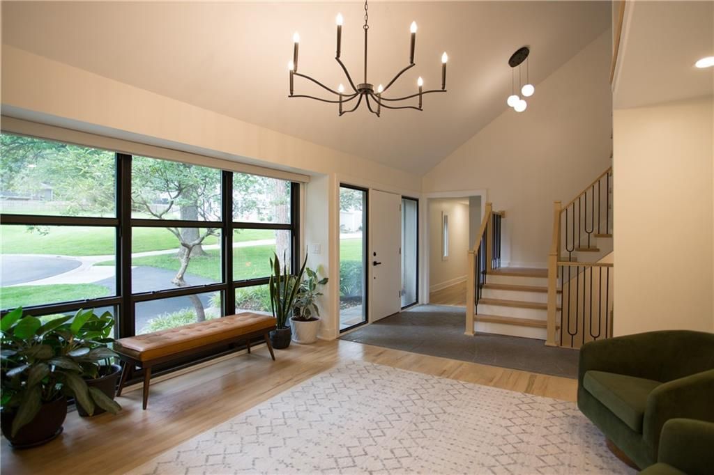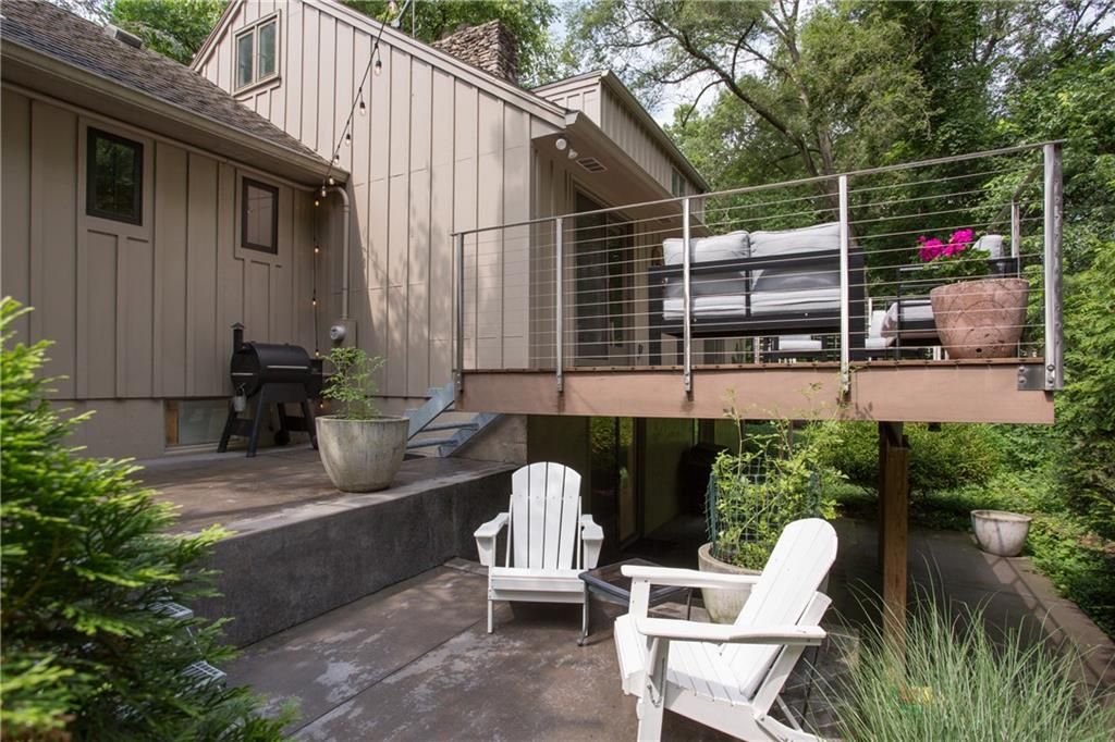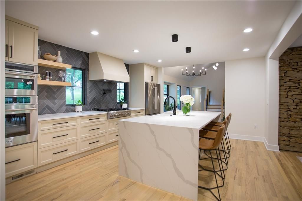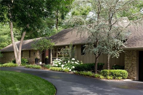 Price Improvement! Tucked away in a quiet cul-de-sac on a private, treed .6-acre corner lot, this beautifully reimagined home blends modern luxury with serene seclusion. Boasting one of the longest footprints in the neighborhood, the thoughtfully designed layout offers exceptional space for entertaining and everyday living. The primary suite is a private retreat all its own - nestled in a separate wing of the home and featuring a cozy fireplace, spa-inspired bath, walk-through closet, and in-suite laundry for ultimate convenience. Step into the main living area where refinished original hardwood floors and a dramatic open staircase set a grand tone. The chef's kitchen is a true showstopper, complete with high-end appliances, a striking waterfall island, and a spacious walk-in pantry - perfect for gatherings or gourmet cooking. Downstairs, enjoy updated flooring with wet bar and a large unfinished space ideal for a home gym, workshop, or additional storage. Outside, the lush, tree-filled backyard offers total privacy with composite decking, frequent visits from wildlife, and the calming sounds of a natural stream after rainfall. A rare opportunity to own a move-in ready masterpiece in one of Old Leawood's most coveted neighborhoods! Owner/Agent.