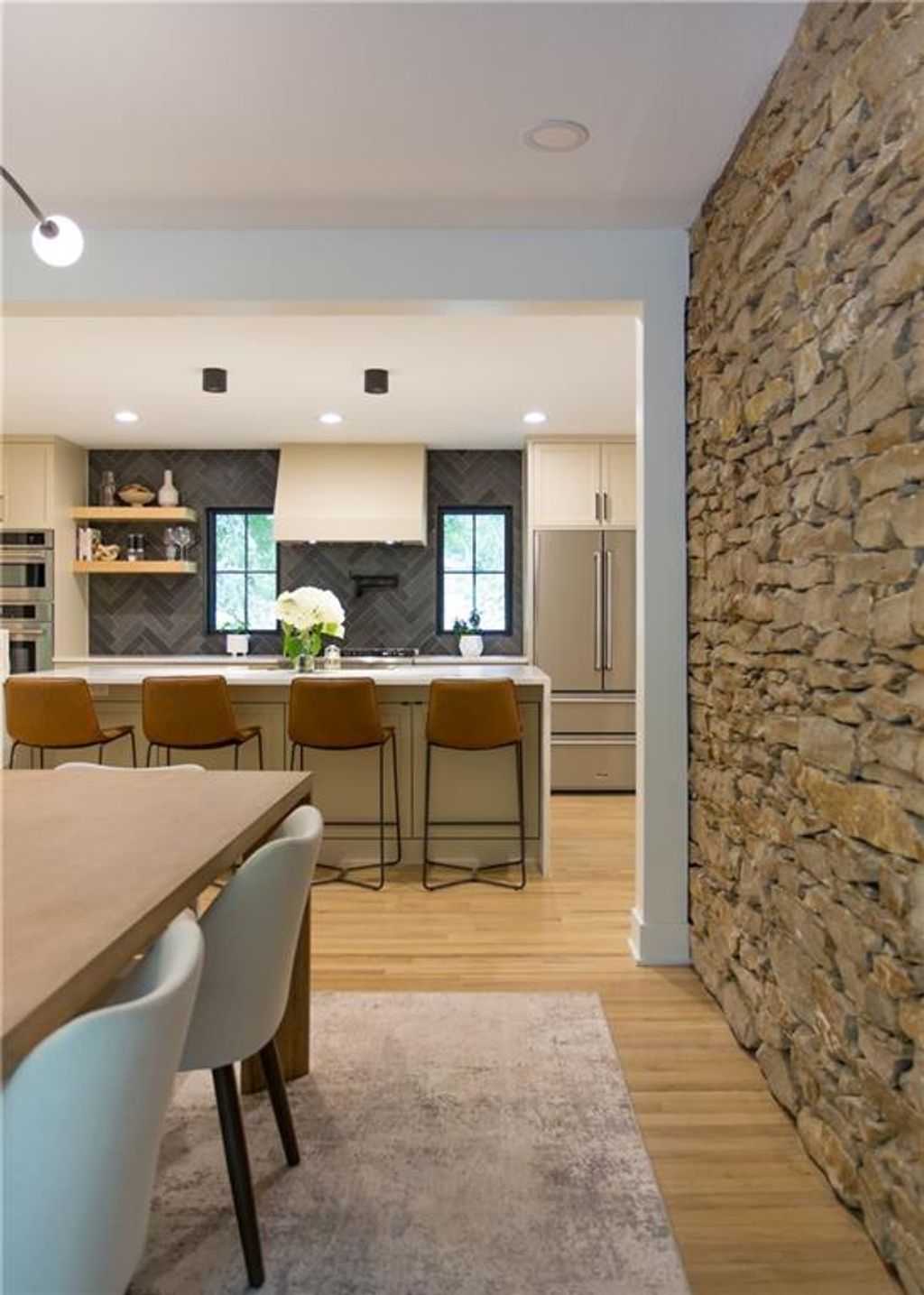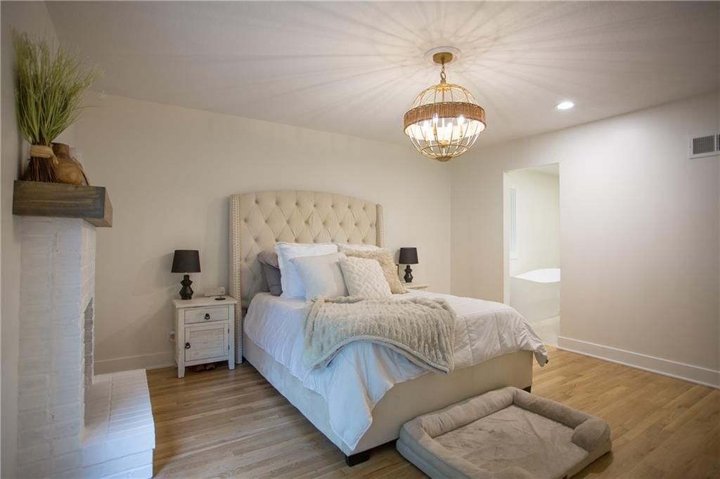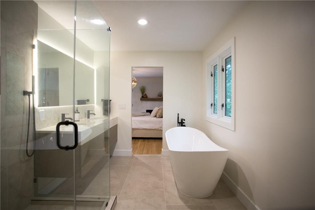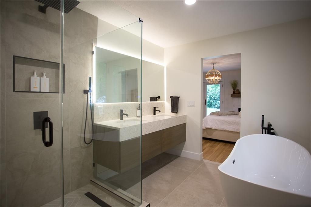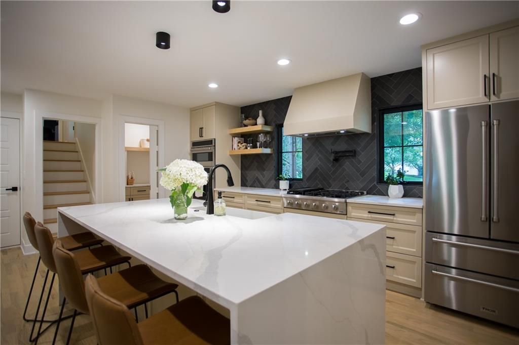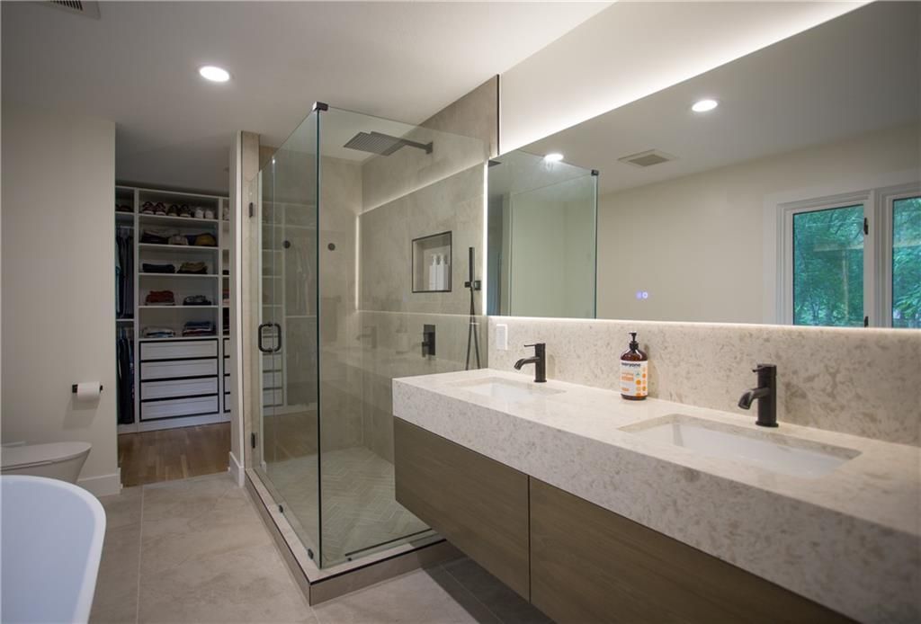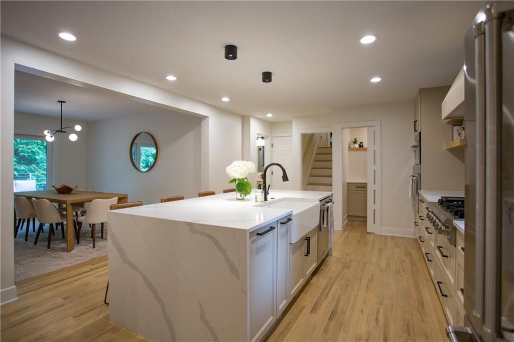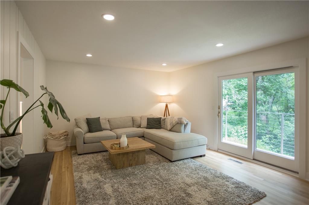 Price Improvement! Tucked away in a quiet cul-de-sac on a private, treed .6-acre corner lot, this beautifully reimagined home blends modern luxury with serene seclusion. Boasting one of the longest footprints in the neighborhood, the thoughtfully designed layout offers exceptional space for entertaining and everyday living. The primary suite is a private retreat all its own - nestled in a separate wing of the home and featuring a cozy fireplace, spa-inspired bath, walk-through closet, and in-suite laundry for ultimate convenience. Step into the main living area where refinished original hardwood floors and a dramatic open staircase set a grand tone. The chef's kitchen is a true showstopper, complete with high-end appliances, a striking waterfall island, and a spacious walk-in pantry - perfect for gatherings or gourmet cooking. Downstairs, enjoy updated flooring with wet bar and a large unfinished space ideal for a home gym, workshop, or additional storage. Outside, the lush, tree-filled backyard offers total privacy with composite decking, frequent visits from wildlife, and the calming sounds of a natural stream after rainfall. A rare opportunity to own a move-in ready masterpiece in one of Old Leawood's most coveted neighborhoods! Owner/Agent.